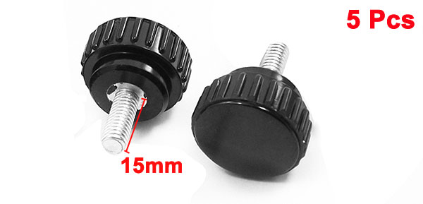 Product Name Knurled Knob Type Screw On Head Diameter 25mm / 0.9" Thread Length 15mm / 0.6" Thread Diameter 6mm / 0.24" Total Height 31mm / 1.2" Material Metal, Plastic Color Silver Tone, Black Weight 68g Package Content 5 x Knurled Knob - Reviews