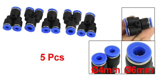5 Pcs 6mm to 4mm Air Pneumatic Y Shaped Push in Quick Fitting