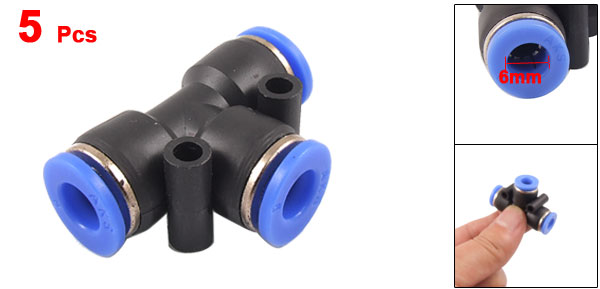 5 Pcs 6mm to 6mm One Touch Ends Piping Push In Quick Fittings T Connectors