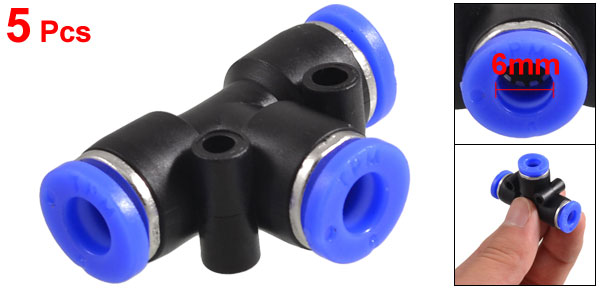 5 Pcs 6mm to 6mm T Style One Touch Fittings Push in Quick Connectors