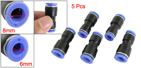 5 Pcs 6mm to 8mm Tube Quick Fittings Straight Connector