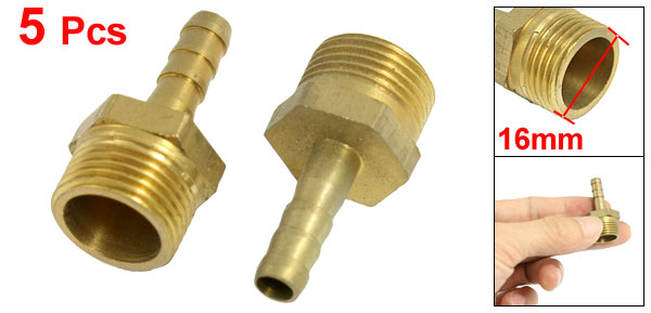 5 Pcs 6mm Water Gas Air Hose Barb 3/8" PT Thread Brass Straight Connector