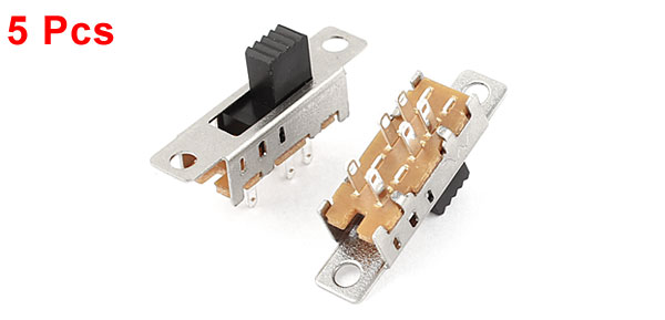 5 Pcs 6Pins PCB Mounted ON/OFF/ON 3 Positions DPDT Vertical Slide Switch