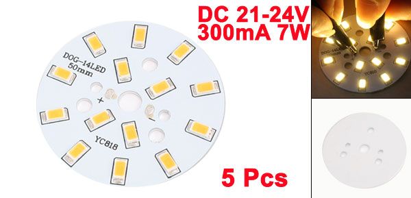 5 Pcs 7W Warm White SMD 5630 14-LED Spotlight Aluminum Base Plate 50mm Dia