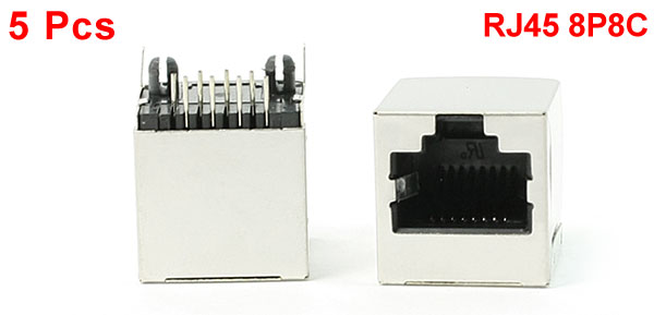 Product Name RJ45 Jack Feature RJ45 8P8C Material Plastic, Metal Color Black, Silver Tone Total Pin Number 8 Pin Type Round Pin,PCB Mounting Pin Angle & Location 0 Degree Angle Pins(Vertical Mounting) Each Size (Approx.) 16 x 15.5 x 16mm / 0.63" x 0.61" x 0.63" (L*W*H) Net Weight 29g Package Content 5 x RJ45 PCB Jack - Reviews