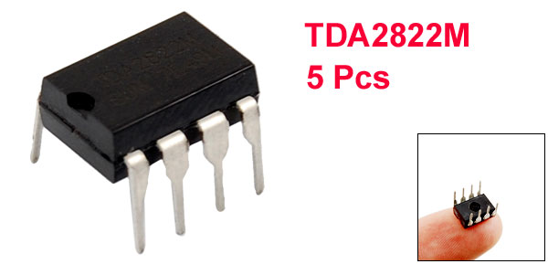 Product Name Radio DIP IC Model TDA2822M Pin Pitch 2.3mm / 0.09" Pin Length 5.8mm / 0.228" Row to Row Distance(Approx) 8mm / 0.315" Pins Quantity 8 Wide Supply Voltage Range 1.8 to 15V Drain Current 9mA Overall Size (Each) 8 x 8 x 7mm / 0.31" x 0.31" x 0.27" (L*W*H) Material Plastic, Metal Color Black, Silver Tone Net Weight 4g Package Content 5 x Radio DIP IC - Reviews