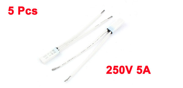 5 Pcs 80 Celsius NC Bimetal Thermostat Temperature Control Switch 250V 5A