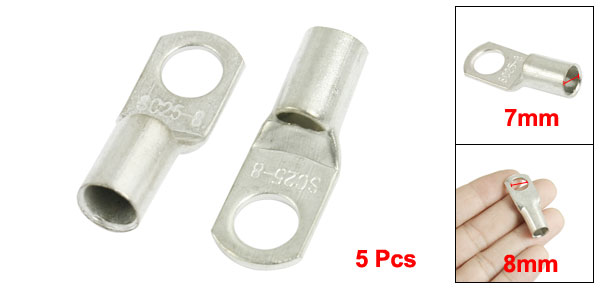 5 Pcs 8mm Bolt Hole Copper Cable Terminals Silver Tone