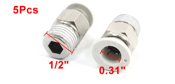 5 Pcs 8mm Pneumatic Air Compressor Tube to 1/2" Quick Coupling Fittings