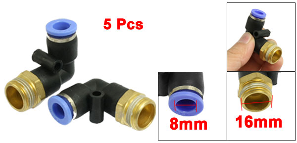 5 Pcs 8mm Push In Connector PT 3/8" Thread Elbow Quick Fitting