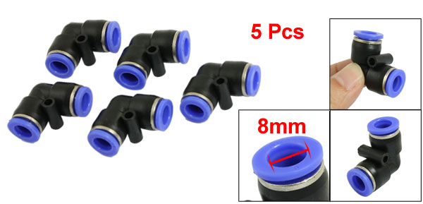 5 Pcs 8mm to 8mm L Shaped Pneumatic Push in Elbow Fittings Connector