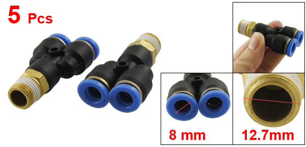 5 Pcs 8mm x 1/4" PT Push In One Touch Y Shaped Quick Fittings
