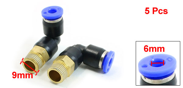 5 Pcs 9mm Thread Pneumatic Air Pipe Connectors Elbow Quick Fittings