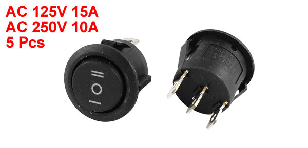 Product Name Rocker Switch Poles SPDT Terminals 3 Pins Position On/Off/On Three Position Rated Voltage & Current AC 125V, 15A AC 250V, 10A Overall Size(Approx.) 23 x 29mm / 0.9" x 1.1" (Dia.*H) Mounting Size 20 x 15mm / 0.8" x 0.6" (Diameter*Depth) Color Black Material Plastic, Electronic Parts TWeight 25g Package Content 5 Pcs x Rocker Switches - Reviews