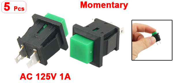 5 Pcs AC 125V 1A SPST Momentary Green Push Button Switch