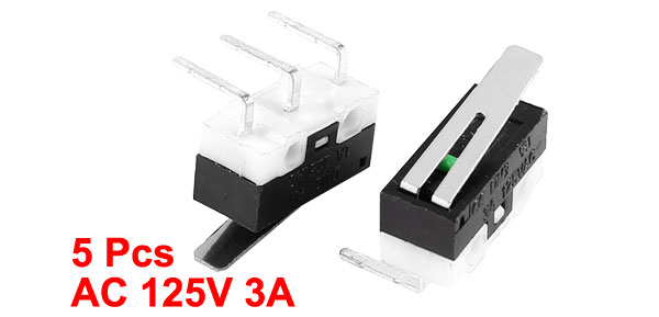 5 Pcs AC 125V 3A SPDT Short Lever Arm Momentary Micro Limit Switch