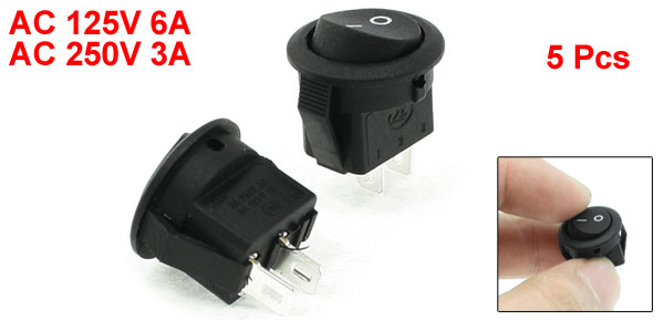 5 Pcs AC 125V/6A 250V/3A 2 Pins SPST ON OFF Rocker Boat Switches Black