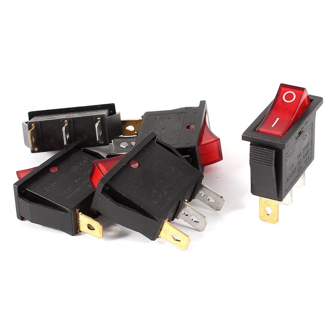 5 Pcs AC 15A/250V 20A/125V 3 Pin SPDT Red LED Indicator Rocker Switch KCD3