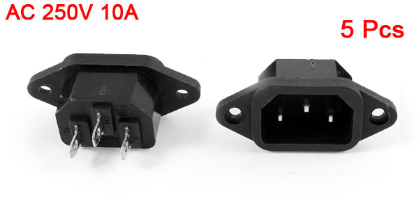 5 Pcs AC 250V 10A 3 Pins IEC320 C14 Power Inlet Socket Black
