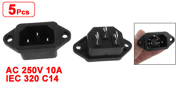 Product Name Power Inlet Socket Power Supply AC 250V 10A Plug Type IEC 320 C14 Pins Number 3 Mounting Type Screw Type Mounting Size 2.7 x 2 x 2.1cm / 1.1" x 0.8" x 0.83" (L*W*T) Mounting Screw Pitch 4cm / 1.6" Overall Size 5 x 2.2 x 2.7cm / 2" x 0.9" x 1.1" (L*W*T) Material Plastic, Metal Color Black, Silver Tone Net Weight 42g Package Content 5 x Power Inlet Sockets - Reviews