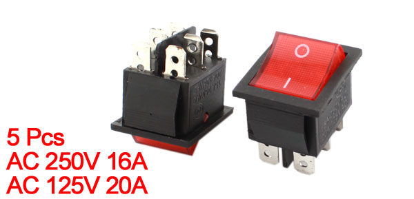 5 Pcs AC 250V/125V 16A/20A DPDT 2-Position ON/OFF Boat Rocker Switch