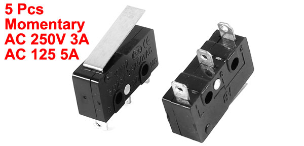 5 Pcs AC 250V/125V 3A/5A SPDT 1NO 1NC Momentary Hinge Lever Micro Switch