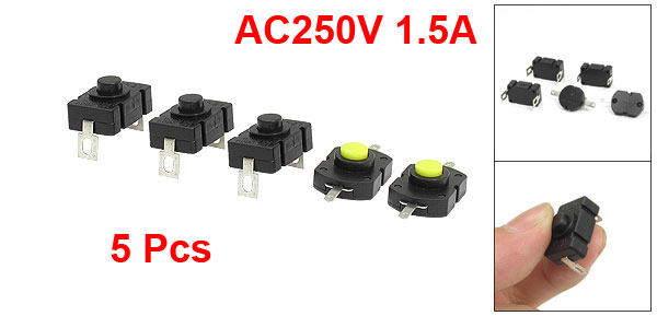 5 Pcs AC 250V 1.5A 2 Pins Latching Push Button Switch for Electric Torch