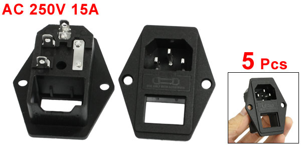 Product Name Power Inlet Socket Power Supply AC 250V 15A Plug Type IEC 320 C14 Pins Number 3 Mounting Type Clamp Type Mounting Size 47 x 28 x 30mm/ 1.8" x 1.1" x 1.2"(L*W*H) Overall Size 59 x 49 x 17mm/ 2.3" x 1.9" x 0.7"(L*W*H) Fit Switch Size 21 x 15 x 17mm/ 0.8" x 0.6" x 0.7"(L*W*H) Material Plastic, Metal Color Black Weight 100g Package Content 5 Pcs x Power Inlet Socket - Reviews