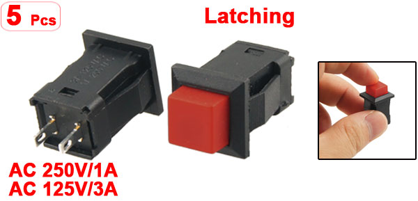 5 Pcs AC 250V/1A 125V/3A SPST Latching Red Push Button Switch Tboak