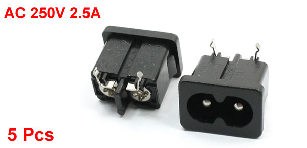 5 Pcs AC 250V 2.5A 2 Pins IEC320 C8 Power Inlet Socket Connector Solder