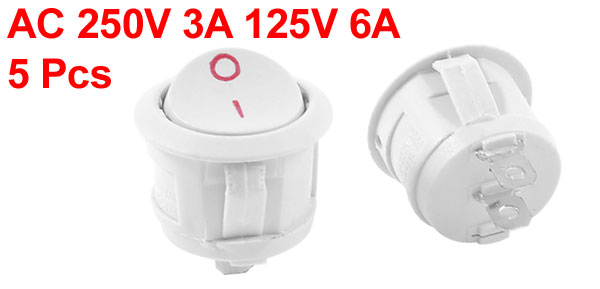 5 Pcs AC 250V 3A 125V 6A SPST On/Off SPST Rocker Switch