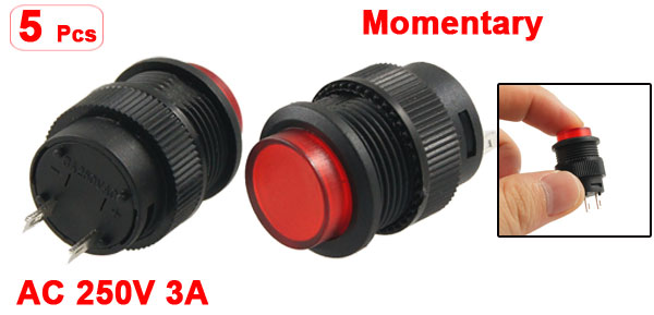 5 Pcs AC 250V 3A SPST Momentary Red Push Button Switches