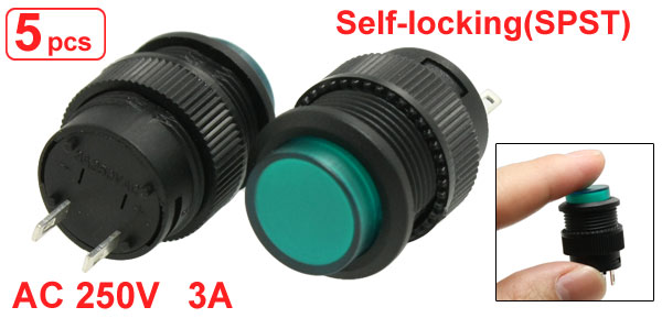 5 Pcs AC 250V 3A SPST ON/OFF Self-locking NO Round Push Button Switch Green