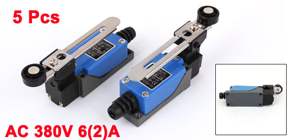 5 Pcs AC 380V 6(2)A DPST 1NO 1NC Momentary Side Rotary Roller Lever Limit Switch