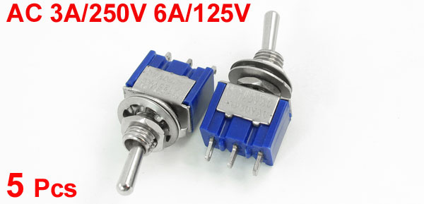 5 Pcs AC 3A/250V 6A/125V ON/OFF SPDT Mini 2 Position Latching Toggle Switch