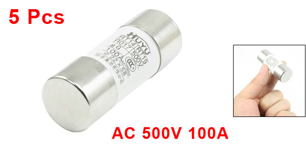 Product Name Ceramic Fuse Model RT14 RT19 R017 Type Fast Blow Rated Voltage AC 500V Rated Current 100A Dimension 22 x 58mm/ 0.86" x 2.3" (D*L) Material Metal, Ceramic, Electronic Parts Main Color White, Silver Tone Net Weight 238g Package Content 5 x Ceramic Fuses - Reviews