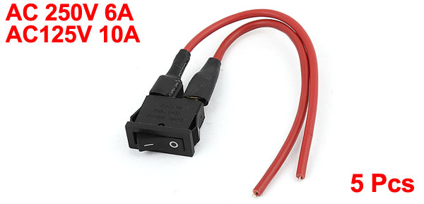 5 Pcs AC 6A/250V 10A/125V 2 Wires SPST Rocker Switch Black Red