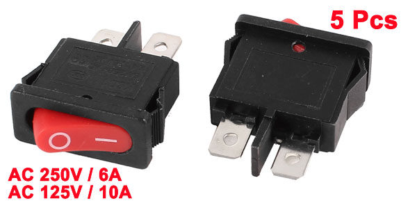 Product Name Rocker Switch Material Plastic Model KCD1 Contact Pin 2 Pin Switch Type SPST Voltage / Current AC 250V / 6A, AC 125V / 10A Size 20 x 9 x 25mm / 0.8" x 0.35" x 1"(L*W*H) Color Black, Red Weight 13g Package Content 5 x Rocker Switches - Reviews