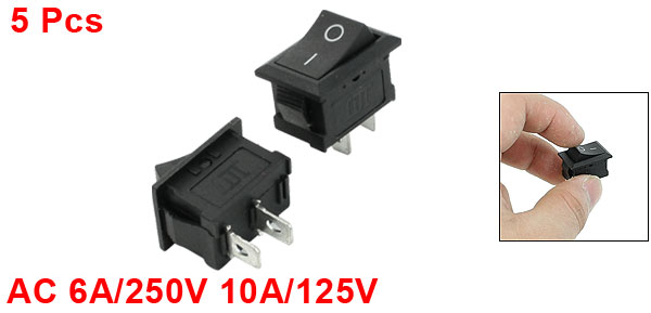 5 Pcs AC 6A/250V 10A/125V SPST 2 Pins I/O Snap In Boat Rocker Switch