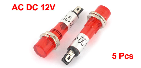 5 Pcs AC DC 12V 7mm Red Bulb Power Signal Indicator Pilot Light Lamp