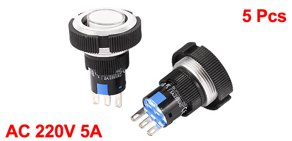 Item Name Push Button Switch Contact SPDT(1NO 1NC) Ith 5A Rating AC 220V 5A Pin Number 3 Thread Diameter 22mm/0.87" Total Size(Not Included Pin) 29 x 32mm/1.2" x 1.3" (L*Max.W) Material Plastic, Electric Parts Housing Color Black, Red Net Weight 56g Package Content 5Pcs x Push Button Switch - Reviews