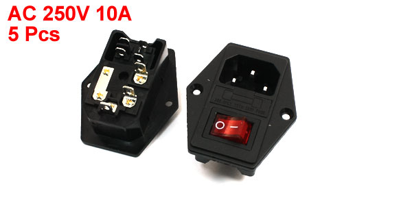 5 Pcs AC250V 10A Red Indicator Switch Fuse Holder IEC320 C14 Inlet Power Socket