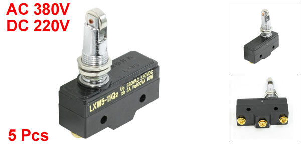 Product Name Micro Switch Model No. LXW5-11Q2 Contact Type 1NO, 1NC, 1 Com Mounting Type Panel Mount Termination Style Screw Terminal Actuator Type Parallel Roller Plunger Rating Ue: AC 380V, DC 220V