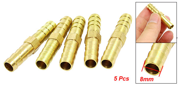 5 Pcs Air Gas 8mm Brass Straight Hose Connector Joiner