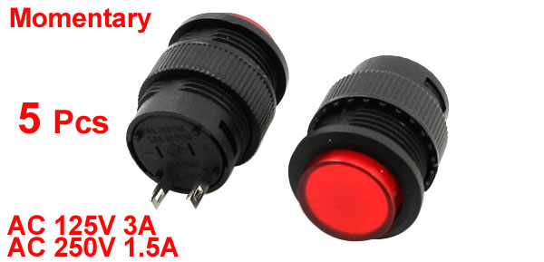 5 Pcs Arcade Games 2 Pins Momentary Push Button 13mm Red AC125V/3A 250V/1.5A