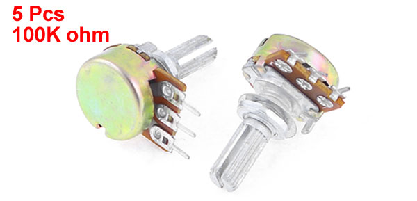 5 Pcs B100K 100K ohm Single Linear Taper Ratory Potentiometers