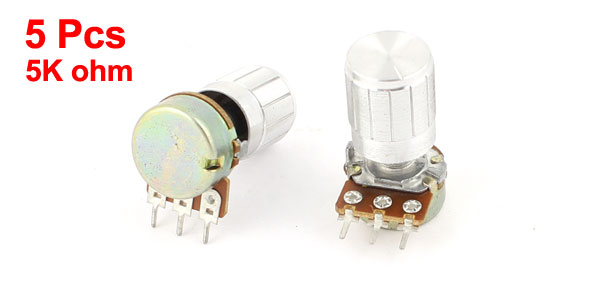 Product Name Potentiometer Resistance Value 5K ohm Adjustment Type Top Adjustment Type Single Linear (Type B) Features Knurled Shaft Shaft Diameter 6mm / 0.2" Shaft Length 13mm / 0.51" Mounting Thread Diameter 7mm / 0.3" Base Size 16 x 7.3mm / 0.63" x 0.29"(D*H) Knob Size 15 x 17mm / 0.59" x 0.67"(D*H) Total Height 29mm / 1.14" Material Metal, Electronic Parts Net Weight 46g Package 5 x Potentiometer - Reviews