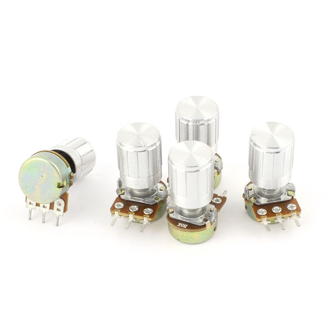 5 Pcs B5K 5K Ohm 13mm 3 Terminals Audio Single Linear Taper Potentiometer