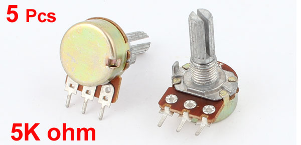 5 Pcs B5K 5K Ohm 3 Terminals Rotary Audio Single Linear Taper Potentiometer Pot