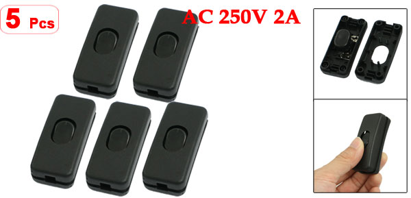 5 Pcs Bedroom Black ON/OFF In Line Cord Switches AC 250V 2A